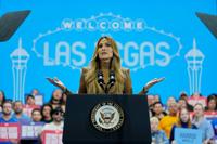 Jennifer Lopez speaks ahead of Democratic presidential nominee Vice President Kamala Harris at a campaign rally Thursday, Oct. 31, 2024, in North Las Vegas, Nev. (AP Photo/John Locher)